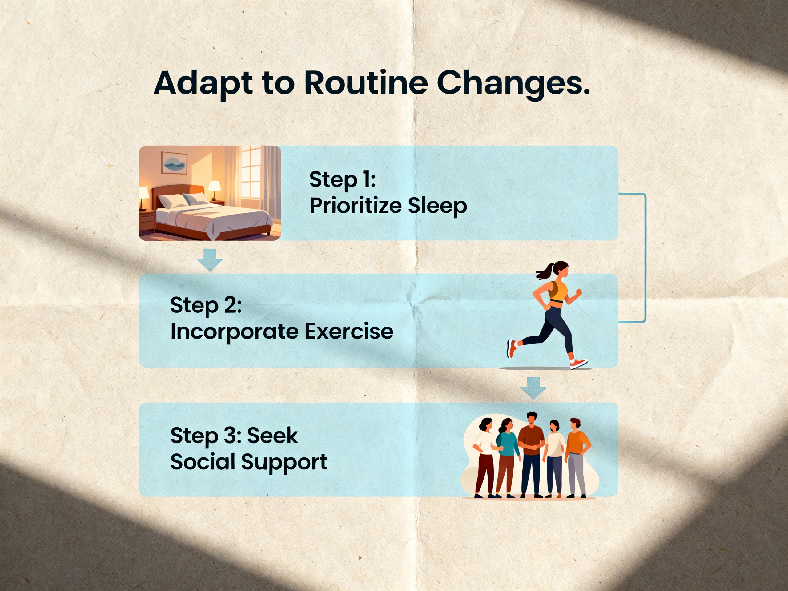 Existe uma relação entre hábitos saudáveis, como sono adequado e gerenciamento do estresse, e a capacidade de lidar com mudanças na rotina de saúde?